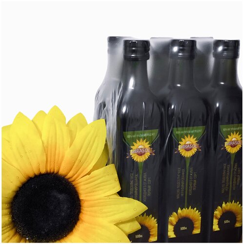 Упаковка из 6 шт, подсолнечное масло холодного отжима, собственного производства "Мирасол" обьем одной бутылки 500 мл
