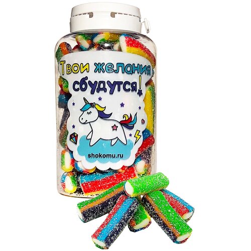 Шокому/Вкусный европейский жевательный мармелад в баночке "Твои желания сбудутся" Единорог 250 мл