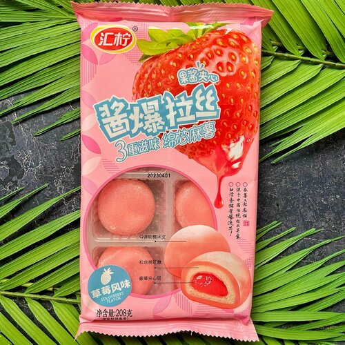 Японские сладости / Пирожное десерт Моти без сахара со вкусом Клубники и маршмеллоу 208 гр. Корейская еда