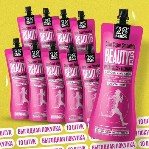 Супер-смузи 28SEEDS, смузи без сахара Чиа бьюти Апельсин + Манго + Лайм, 10 шт