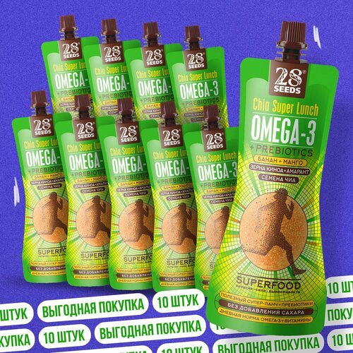 Супер-завтрак 28 SEEDS Чиа ОМЕГА-3 Тропические фрукты 10 шт, без сахара, Омега 6, клетчатка, протеин, пюре фруктовое на завтрак, смузи