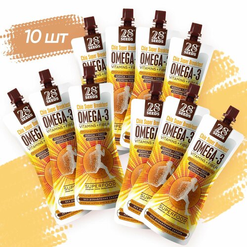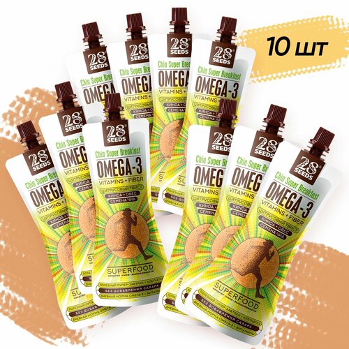 Супер-завтрак 28 SEEDS Чиа ОМЕГА-3 Цитрусовый твист 10 шт Полезный натуральный продукт питания без сахара, омега 6, клетчатка, протеин, пюре фруктовое, смузи