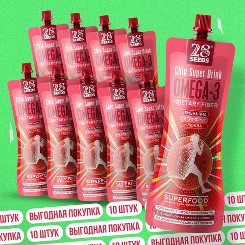 Напиток 28SEEDS, смузи без сахара Чиа суперфуд Грейпфрут + Клюква, 10 шт