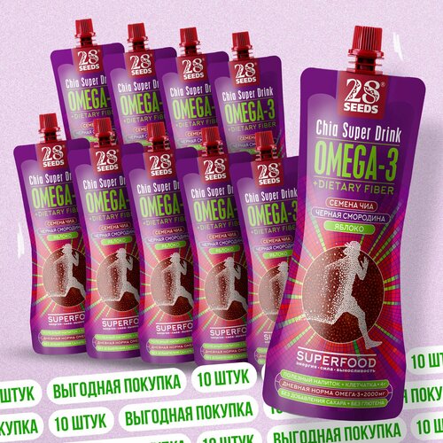 Напиток 28SEEDS, смузи без сахара Чиа суперфуд Смородина + Яблоко, 10 шт