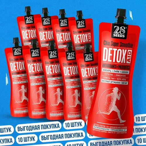 Супер-смузи 28SEEDS, смузи без сахара Чиа детокс Имбирь + Лайм + Банан, 10 шт