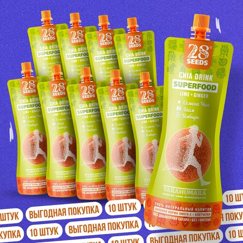 Напиток Чиа 28SEEDS, смузи без сахара суперфуд Лайм — Имбирь, 10 шт