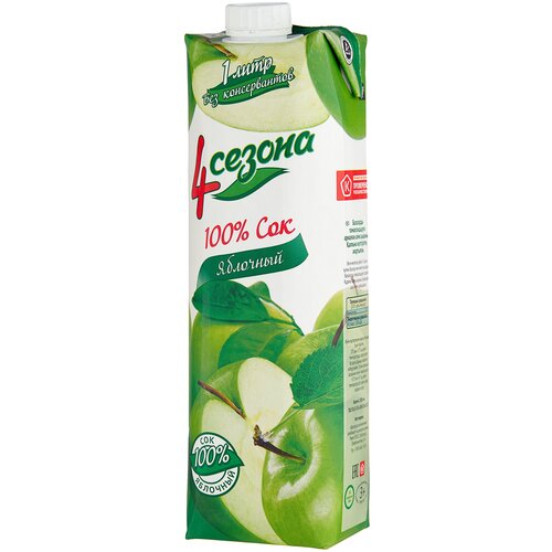 Сок "4 Сезона" Яблочный 1 л. 12 шт/кор (призма) 1шт.
