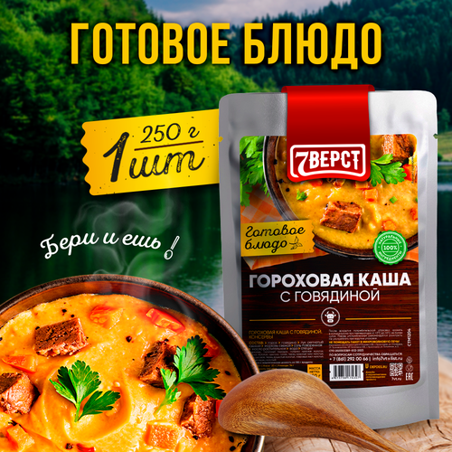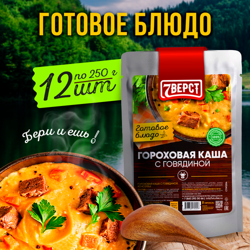 7 вёрст Говядина с гороховой кашей. Готовая еда в реторт-пакете. Консерва в фольге Набор 12 уп. по 250 г