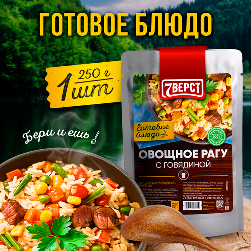 7 вёрст Говядина с овощным рагу. Готовая еда в реторт-пакете. Консерва в фольге 250 г