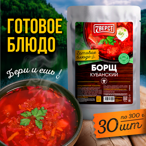 7 вёрст Борщ с говядиной. Готовое консервированное блюдо в реторт-пакете. Консерва в фольге Набор 30 уп. по 300 г
