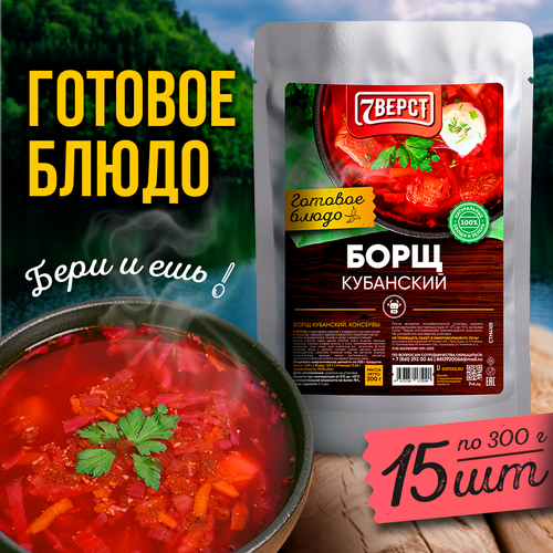 7 вёрст Борщ с говядиной. Готовое консервированное блюдо в реторт-пакете. Консерва в фольге Набор 15 уп. по 300 г