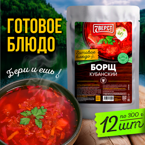 7 вёрст Борщ с говядиной. Готовое консервированное блюдо в реторт-пакете. Консерва в фольге Набор 12 уп. по 300 г