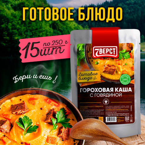 7 вёрст Говядина с гороховой кашей. Готовая еда в реторт-пакете. Консерва в фольге Набор 15 уп. по 250 г