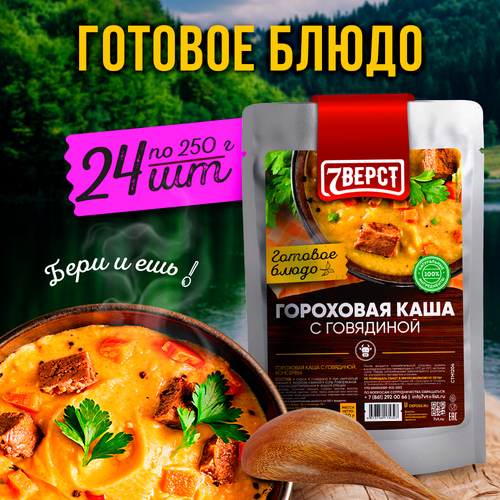 7 вёрст Говядина с гороховой кашей. Готовая еда в реторт-пакете. Консерва в фольге Набор 24 уп. по 250 г
