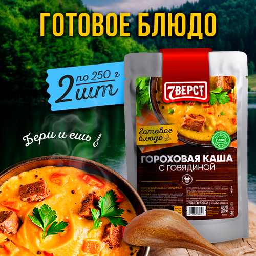 7 вёрст Говядина с гороховой кашей. Готовая еда в реторт-пакете. Консерва в фольге Набор 2 уп. по 250 г