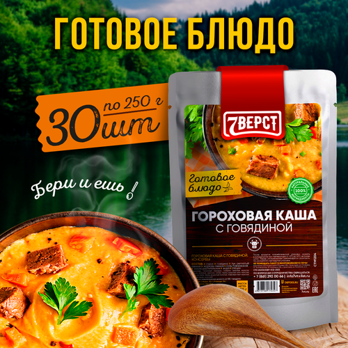 7 вёрст Говядина с гороховой кашей. Готовая еда в реторт-пакете. Консерва в фольге Набор 30 уп. по 250 г
