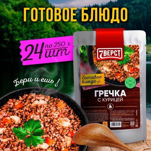 7 вёрст Курица с гречкой. Готовая еда в реторт-пакете. Консерва в фольге Набор 24 уп. по 250 г