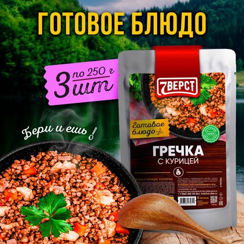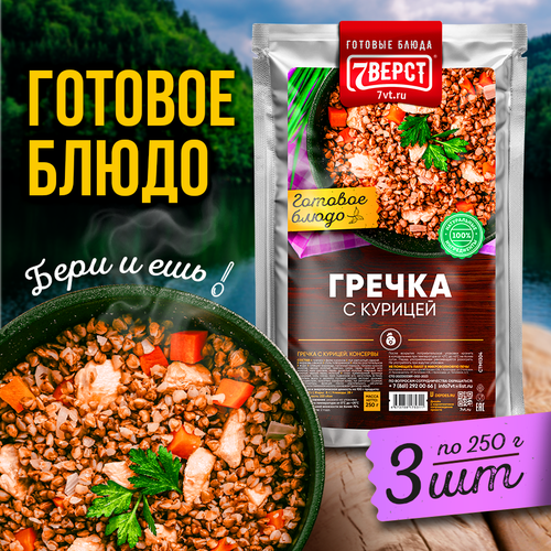 7 вёрст Курица с гречкой. Готовая еда в реторт-пакете. Консерва в фольге Набор 3 уп. по 250 г