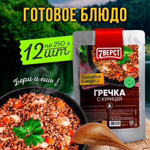 7 вёрст Курица с гречкой. Готовая еда в реторт-пакете. Консерва в фольге Набор 12 уп. по 250 г
