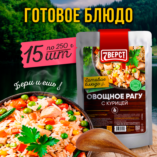 7 вёрст Курица с овощным рагу. Готовая еда в реторт-пакете. Консерва в фольге Набор 15 уп. по 250 г