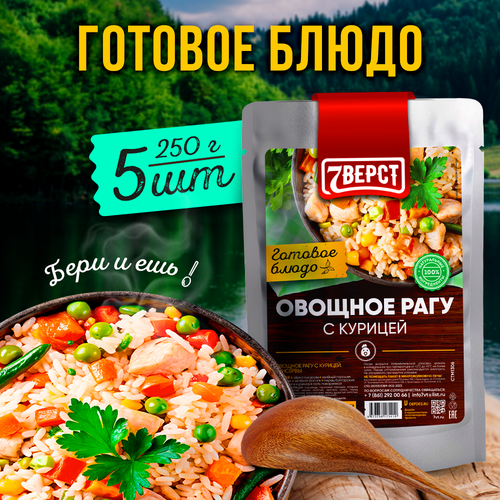 7 вёрст Курица с овощным рагу. Готовая еда в реторт-пакете. Консерва в фольге Набор 5 уп. по 250 г