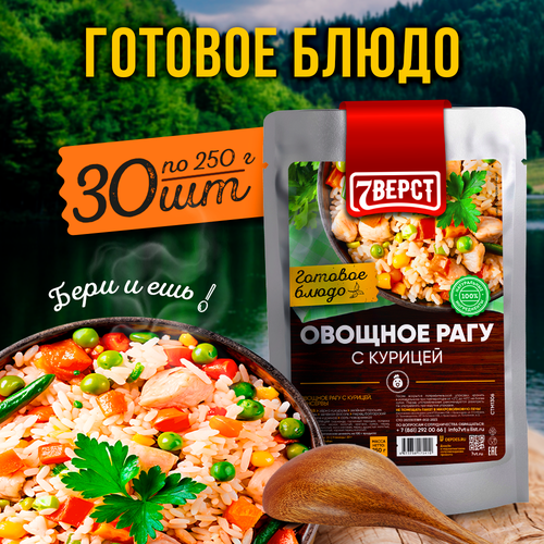 7 вёрст Курица с овощным рагу. Готовая еда в реторт-пакете. Консерва в фольге Набор 30 уп. по 250 г