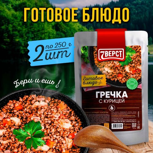7 вёрст Курица с гречкой. Готовая еда в реторт-пакете. Консерва в фольге Набор 2 уп. по 250 г