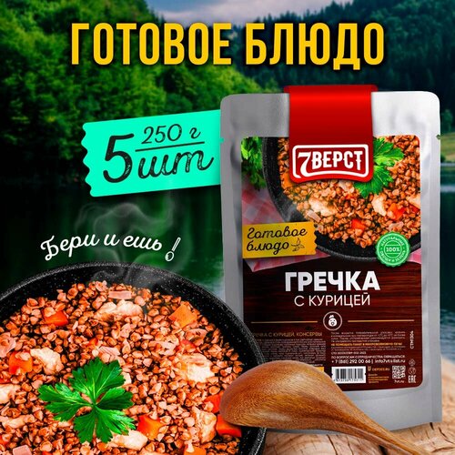 7 вёрст Курица с гречкой. Готовая еда в реторт-пакете. Консерва в фольге Набор 5 уп. по 250 г