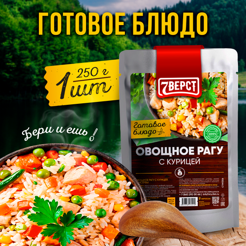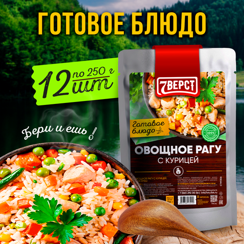 7 вёрст Курица с овощным рагу. Готовая еда в реторт-пакете. Консерва в фольге Набор 12 уп. по 250 г