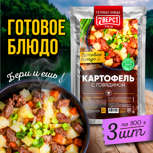 7 вёрст Картофель с говядиной. Готовая еда в реторт-пакете. Консервы натуральные. Набор 3 уп. по 300 г