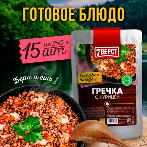 7 вёрст Курица с гречкой. Готовая еда в реторт-пакете. Консерва в фольге Набор 15 уп. по 250 г
