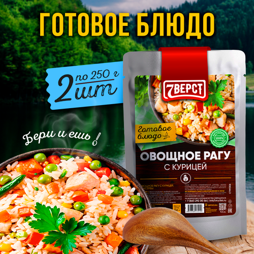 7 вёрст Курица с овощным рагу. Готовая еда в реторт-пакете. Консерва в фольге Набор 2 уп. по 250 г