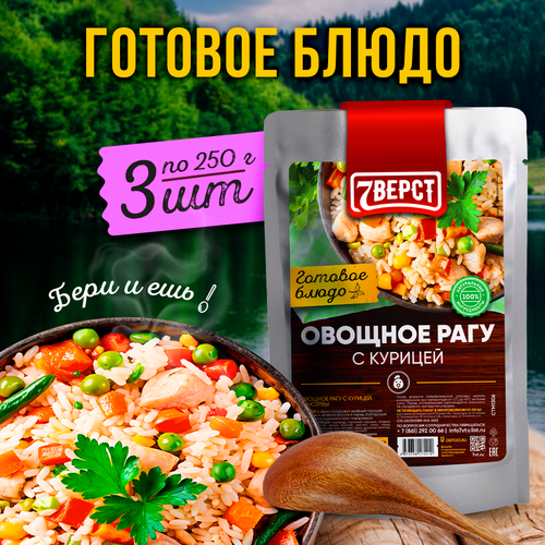 7 вёрст Курица с овощным рагу. Готовая еда в реторт-пакете. Консерва в фольге Набор 3 уп. по 250 г