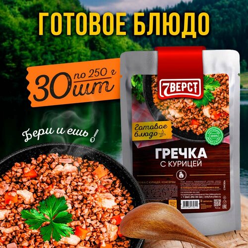 7 вёрст Курица с гречкой. Готовая еда в реторт-пакете. Консерва в фольге Набор 30 уп. по 250 г