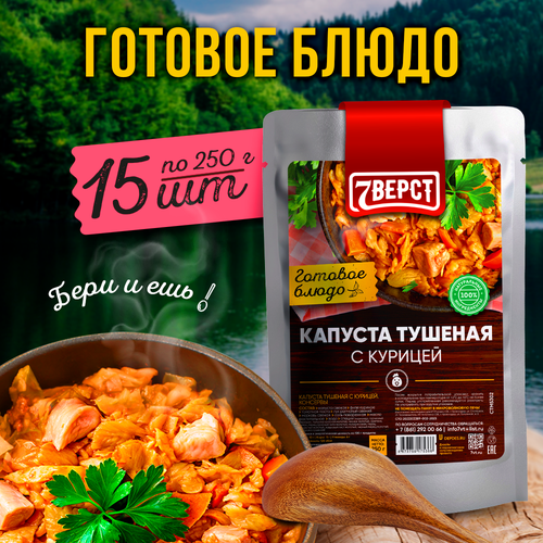 7 вёрст Курица с тушеной капустой. Готовая еда в реторт-пакете. Консерва в фольге Набор 15 уп. по 250 г