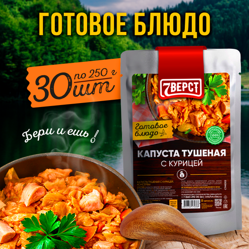 7 вёрст Курица с тушеной капустой. Готовая еда в реторт-пакете. Консерва в фольге Набор 30 уп. по 250 г