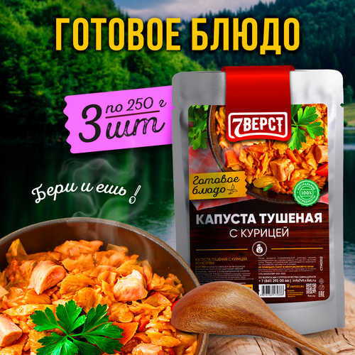 7 вёрст Курица с тушеной капустой. Готовая еда в реторт-пакете. Консерва в фольге Набор 3 уп. по 250 г