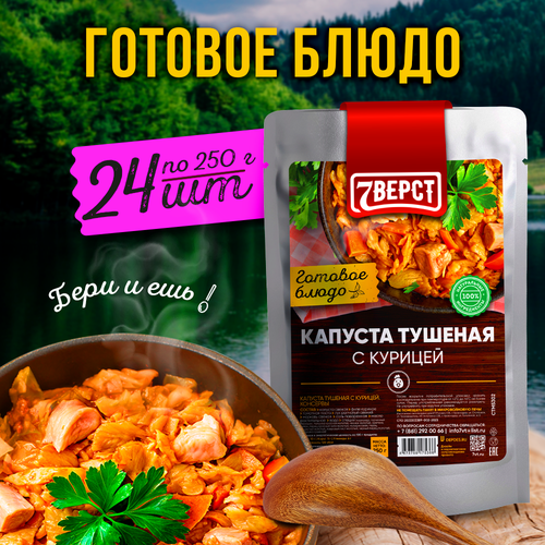 7 вёрст Курица с тушеной капустой. Готовая еда в реторт-пакете. Консерва в фольге Набор 24 уп. по 250 г