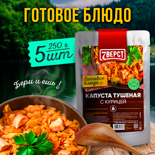 7 вёрст Курица с тушеной капустой. Готовая еда в реторт-пакете. Консерва в фольге Набор 5 уп. по 250 г
