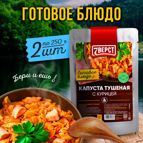 7 вёрст Курица с тушеной капустой. Готовая еда в реторт-пакете. Консерва в фольге Набор 2 уп. по 250 г