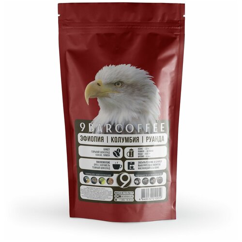 Кофе в зернах 9BARCOFFEE эфиопия/колумбия/руанда, 250г