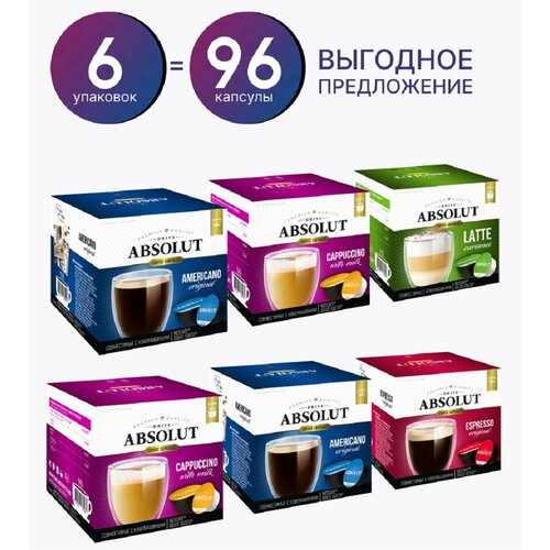Кофе в капсулах "Absolut ассорти" для Nescafe Dolce Gusto, 96 шт.