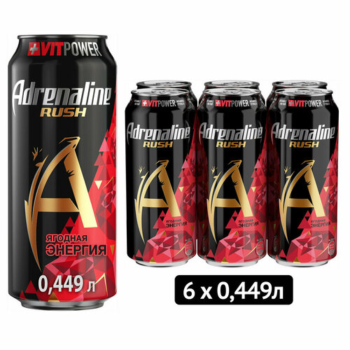 Энергетические напитки Adrenaline red ягодная энергия 6шт по 0.45