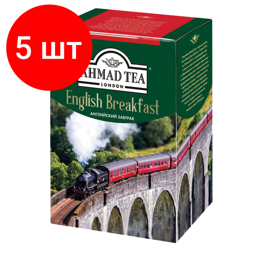 Комплект 5 шт, Чай AHMAD (Ахмад) "English Breakfast", черный листовой, картонная коробка, 200 г, 1292-012