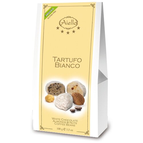 Итальянские шоколадные трюфели из белого шоколада БИО ( TARTUFO BIANCO) ручной работы без глютена AIELLO BIO 100г