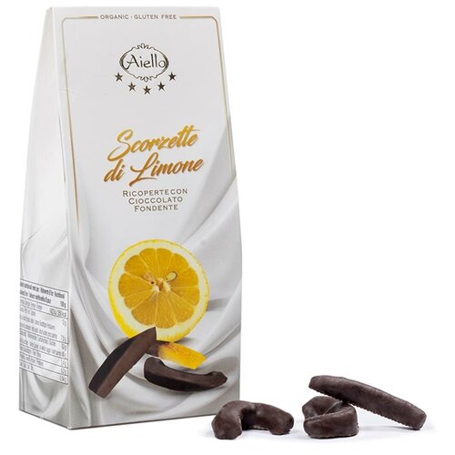 Итальянские цукаты БИО из цедры лимона в темном шоколаде Экстра (SCORZETTE DI LIMONE) ручной работы без глютена AIELLO BIO 90г