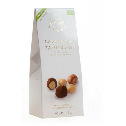 Итальянский лесной орех/фундук из Пьемонта в молочном трюфельном шоколаде БИО (NOCCIOLE TARTUFATE) ручной работы без глютена AIELLO BIO 90г