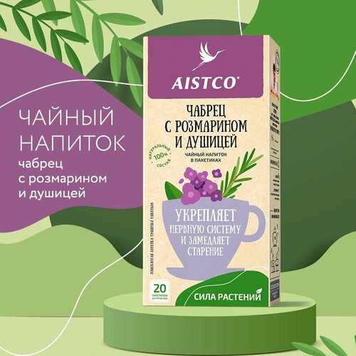 Чабрец с розмарином и душицей, травяной чай в пакетиках AISTCO (аистко), 20 пакетиков без ярлычков