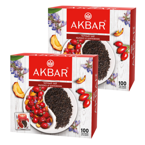 Чай черный Акбар Яблоко и Шиповник 100 пакетиков 2 штуки