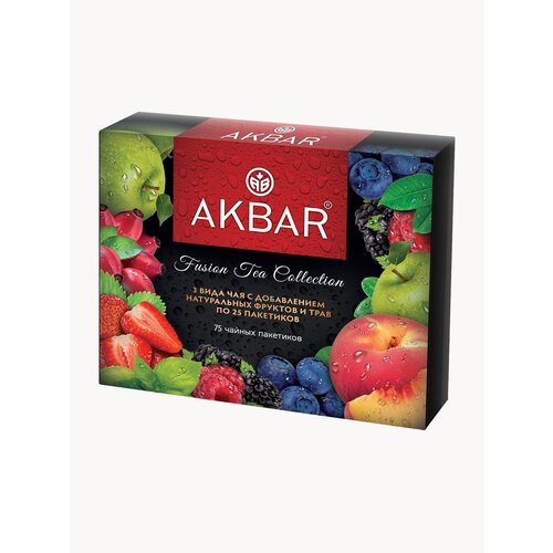 Чайный набор акбар , подарочный, 3 вида чая по 25 пакетов (Лесные Ягоды, Садовые Фрукты, Клубника Базилик)